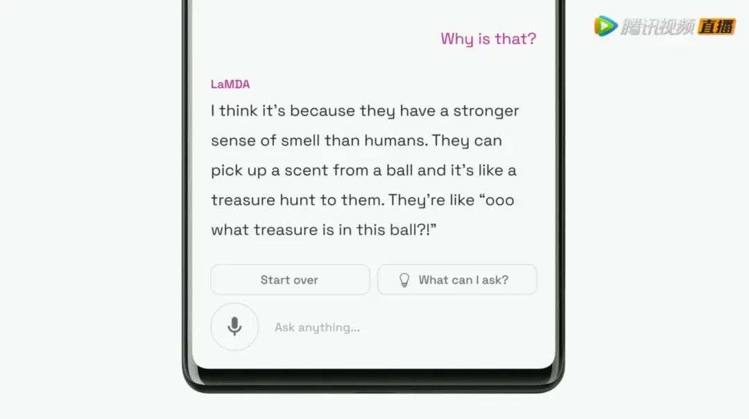 去年出来的 LaMDA 在这届 I/O 大会上获得了大版本更新,简单而言,它是个自然语音对话平台,随着 LaMDA 继续迭代,Google 助理会变得越来越「聪明」。