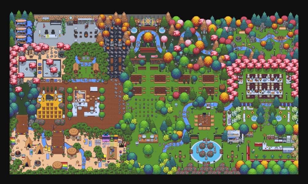 基于这样的理解,Gather并没有使用 VR 等一般人很难接触到的高科技,而是使用像素风格,让人们能够轻松的通过浏览器访问,并打造更加广阔的虚拟空间。