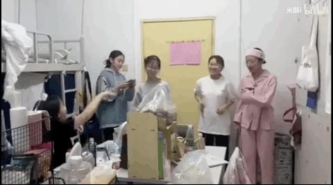 视频内容很简单,就是记录了411宿舍里,六位素面朝天的普通女生嬉笑打闹、划水疯癫的上课和宿舍日常。