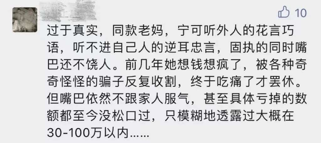 这篇文章的评论区里,很多人说,仿佛看到了自己的父母。而老人们遭遇的骗术,从理财投资到保健品、收藏品,花样百出。