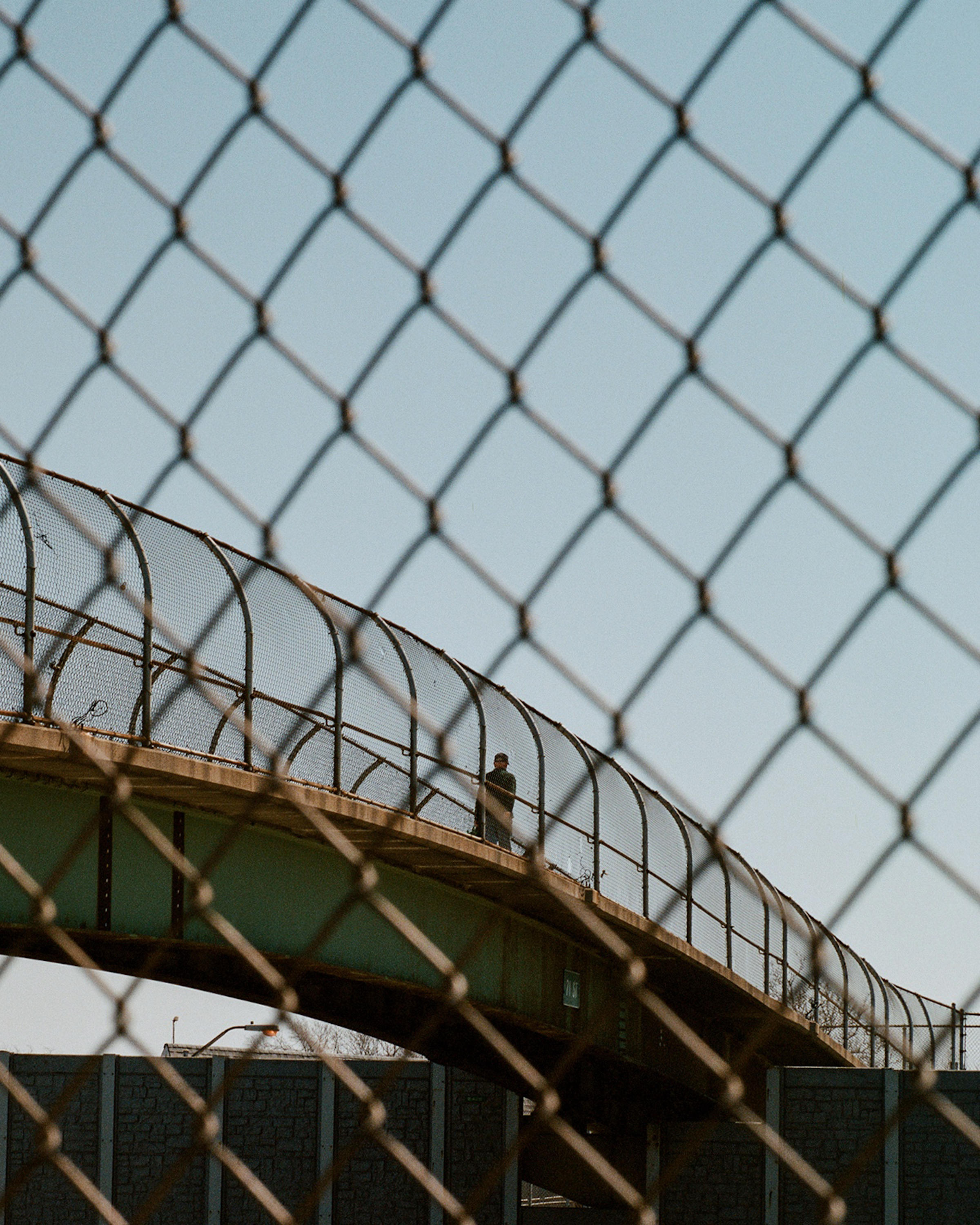 2022年4月12日,一名孤独的行人正在穿过皇后区的一座人行天桥