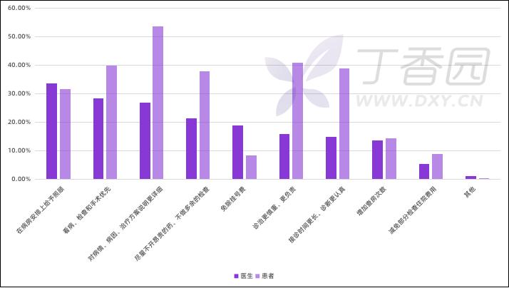 而对患者的调查显示,患者希望得到的照顾排在前三位的分别是:「对病情、病因、治疗方案说明更详细」(53.6%)、「诊治更慎重更负责」(40.9%)和「看病、检查和手术优先」(39.8%)。