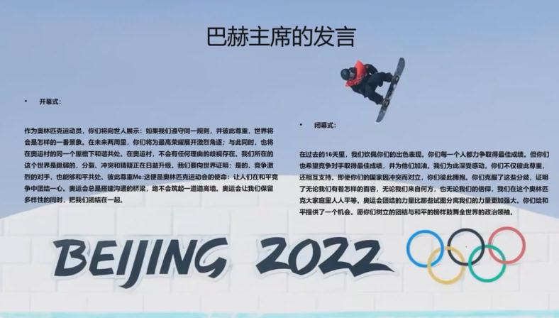国际奥委会主席托马斯·巴赫在北京冬奥会的开幕式和闭幕式上都做了发言,我摘录出了其中一些非常重要的信息: