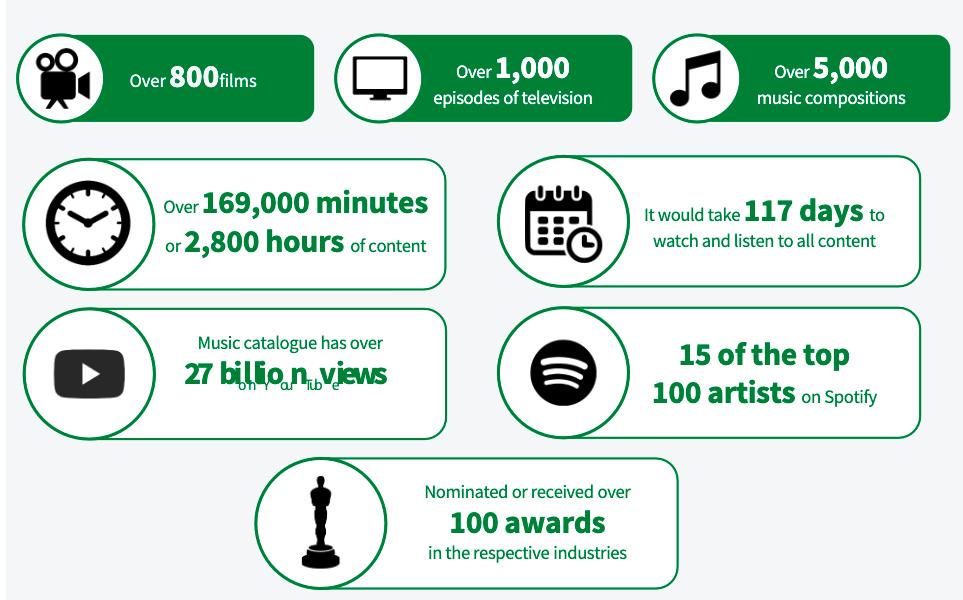 截至2019年,三叶草内容基金已投资超5000首音乐,800多部电影,1000部电视剧