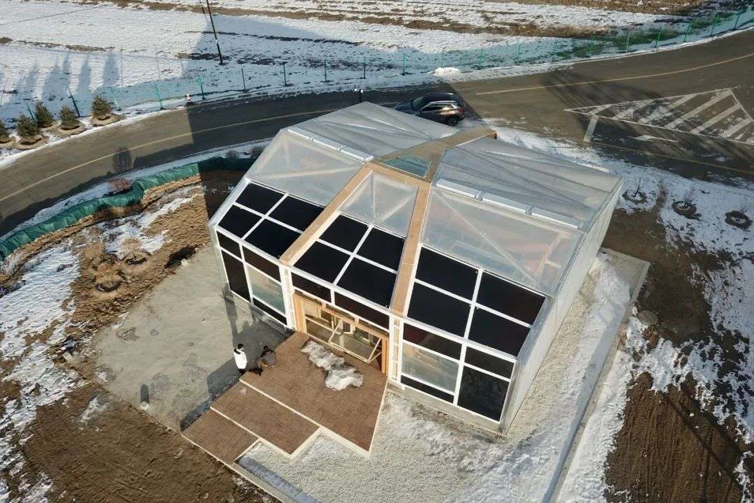 北京冬奥会期间运行的全球首个钙钛矿光伏建筑项目,坐落于张家口,外墙采用协鑫光电 1m×2m 大尺寸钙钛矿组件搭建。