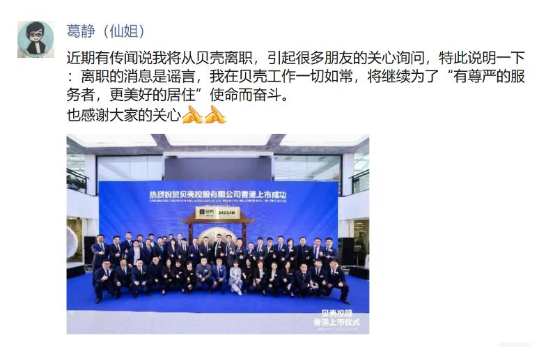 上市同时高管离职?贝壳副总裁发朋友圈辟谣