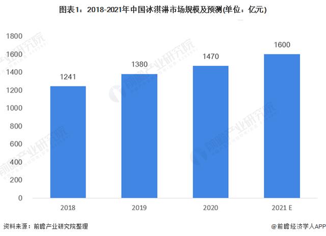 前瞻产业研究院数据显示,我国冰淇淋市场规模近几年增长迅速,2018年市场规模为1241亿元,2020年已增长到1470亿元,预计2021年市场规模将达到1600亿元,市场规模依然保持世界第一。当前,我国人均冰淇淋消费量3.5公斤,显著低于美国、瑞士等国家,中国的冰淇淋市场拥有很大的发展空间。