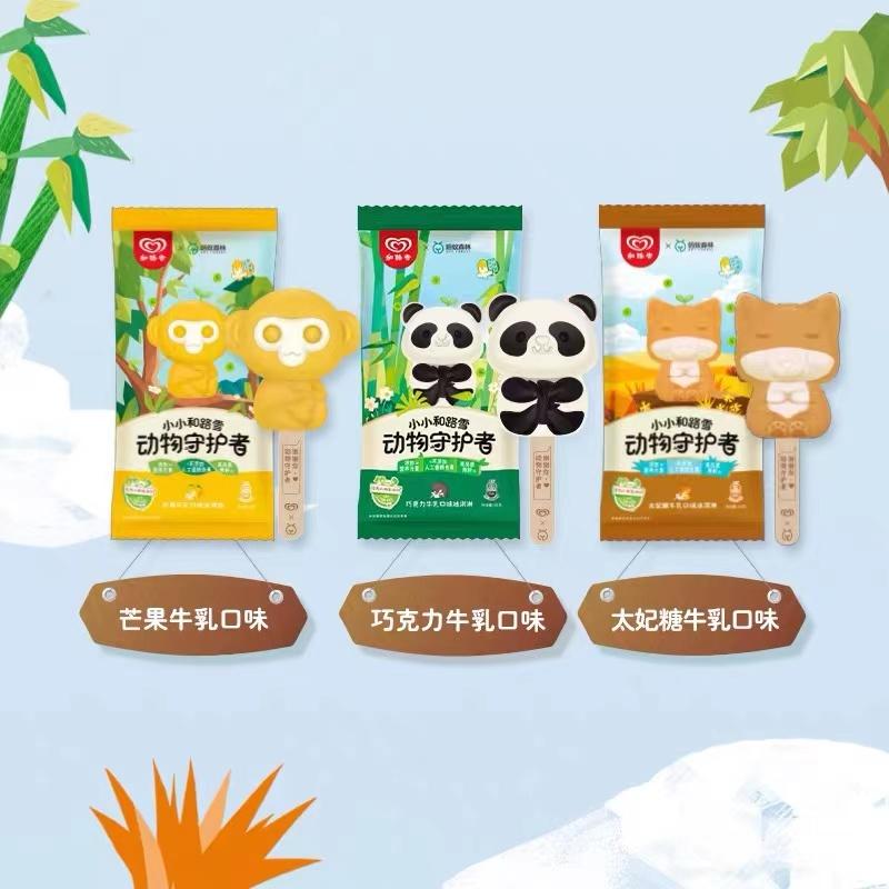 小小和路雪是和路雪旗下首个专为小朋友设计的冰淇淋品牌,这款新品是和蚂蚁森林公益的联名款,也是首款主打公益环保概念的儿童冰淇淋。由于是给小朋友食用,所以在品质符合联合利华最高营养标准,比如总糖分小于12g/份,热量小于110千卡/份,并且还特别添加了维生素D和钙。由于受到疫情影响,冰淇淋市场上不仅购买渠道发生了变化,而且购买习惯也发生改变,家庭装冰淇淋成为一大趋势。作为全民皆可享受的甜品,儿童冰淇淋还是一片广袤的市场。这款产品无论是造型上的3D立体双色动物,还是可以扫码雪糕解锁动物知识,都满足针对儿童群体的趣味性和互动性特色。