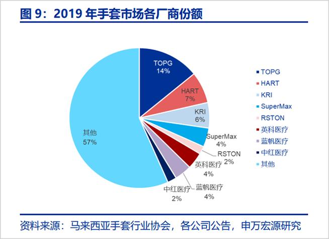 公开资料显示,2019年,上述三家手套制造商合计占有全球市场份额的27%,其中仅“顶级手套”一家14%的市场份额就超过了国内主要手套制造商英科医疗、蓝帆医疗及中红医疗的市占率之和。