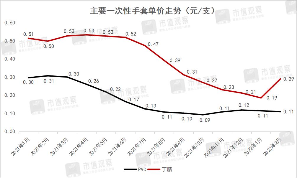 其一是单价,从历史趋势看,今年前两个月包括“PVC”及“丁腈”主要一次性手套类型的产品已经十分接近疫情爆发初期的水平,也就意味着一次性手套产品单价方面的下滑十分有限。