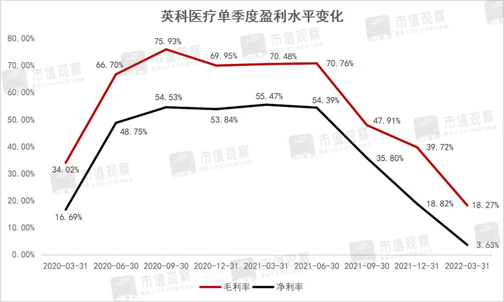正如前文所提,一次性手套行情决定了英科医疗“兴衰”,手套单价的滑落直接投射到英科医疗的盈利水平。数据显示,英科医疗自去年三季度开始,毛利率与净利率 (归母) 均呈现直线滑落。