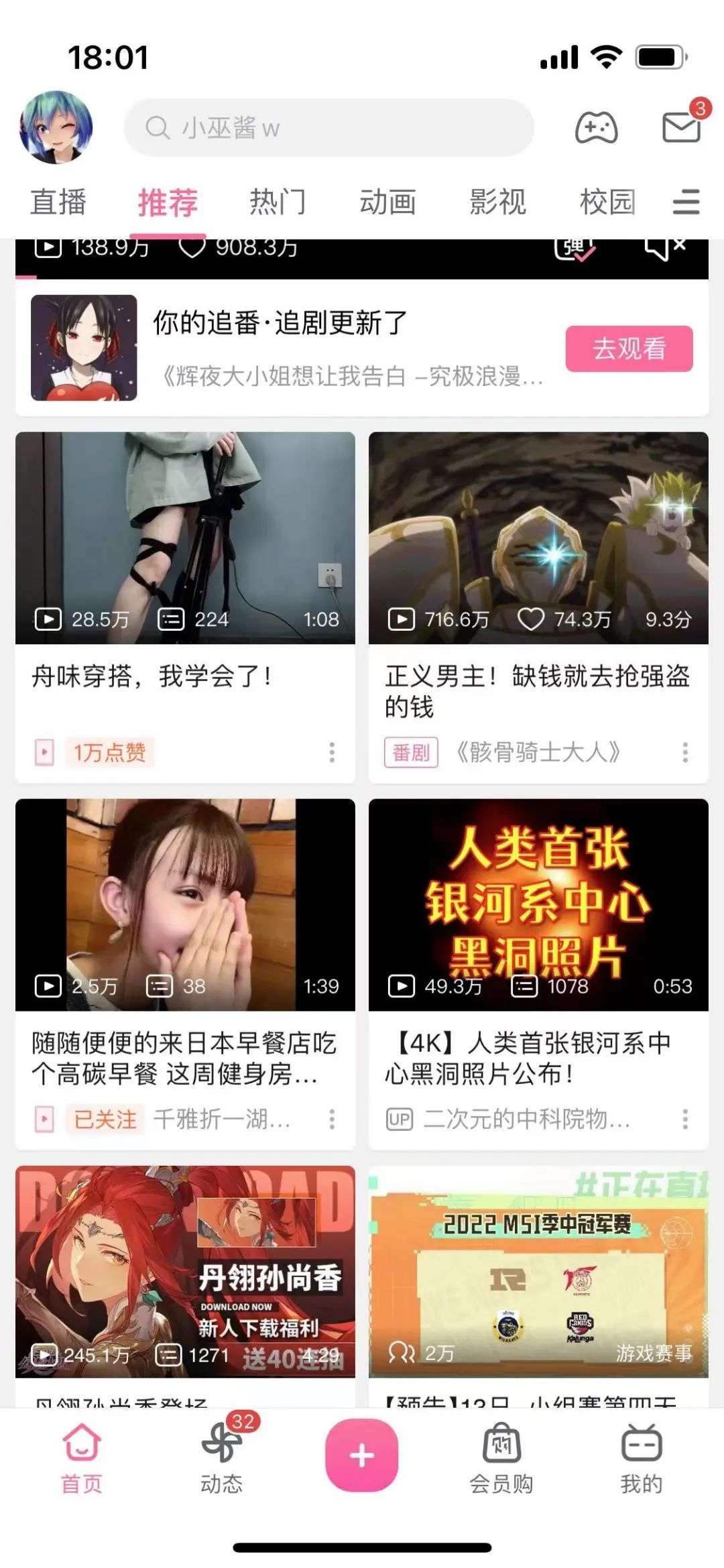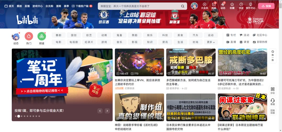 不过,网页端的弊端也不少,比如首页的推荐视频基本以各类目的热门视频为主,仅在首页最上方的一小块处于有依照个人爱好推荐的视频,对于喜欢漫无目的刷视频的用户来说显然不够看。