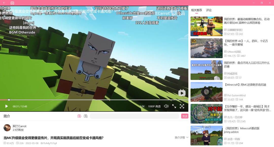 上线新的客户端,而且明显比之前的UWP版更加用心(当然也有消息称是B站直接收购了一个魔改客户端版本,业界称之为“招安”),B站显然不是为了给用户多提供一个观看通道这么简单,毕竟从目前的B站用户使用习惯来看,重心已经逐渐转向移动端,而网页端作为一个补充虽然有一些缺陷,但是整体来说是完善的。