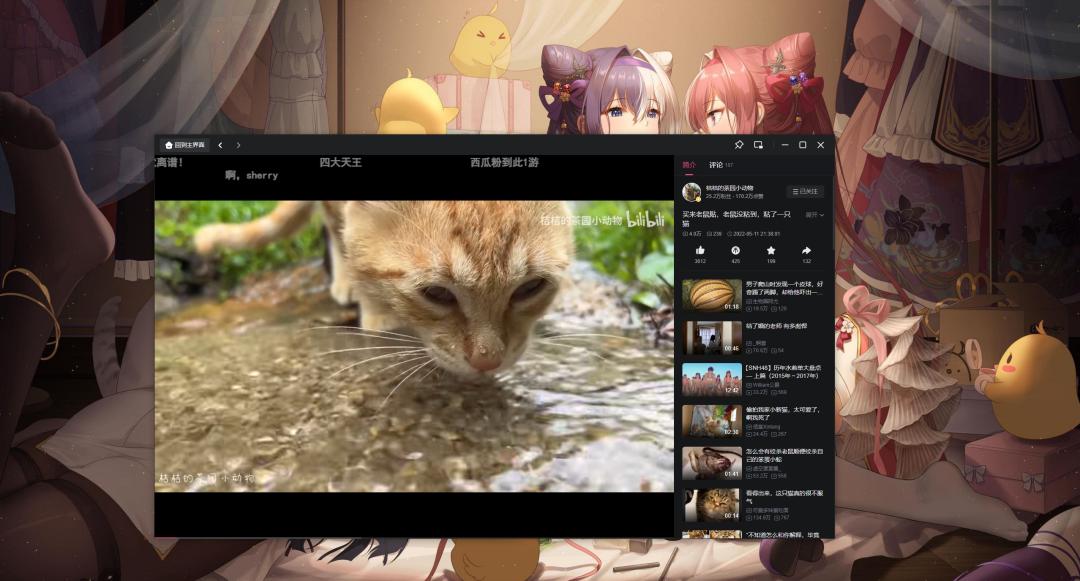 回到视频播放体验上,客户端的播放器采用单独窗口设计,提供前进和后退的记忆功能,同时可以让播放器以小窗模式打开,将仅保留视频画面且支持自由放大和缩小,同时还提供了固定在最前列的功能,可以为用户提供更好的摸鱼体验。