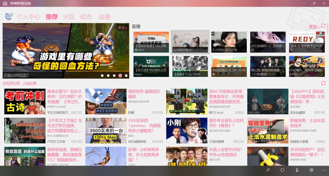 从UI设计来说,B站的客户端版本对比UWP版有着明显的改进,不管是启动速度还是UI设计都改善了许多,对于用户来说这是一个真正可以正常使用的桌面客户端,而不是UWP那样的半成品。