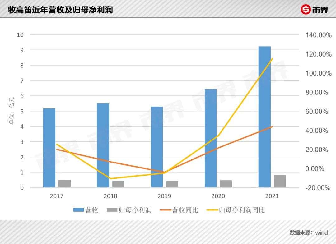 自上市以来,到疫情之前的2019年,牧高笛的业绩不温不火,甚至还出现了负增长。不过,近两年增长很快,尤其是2021年,实现营业收入9.23亿元,同比大增44%;归属母净利润7900万,同比增长了71%。