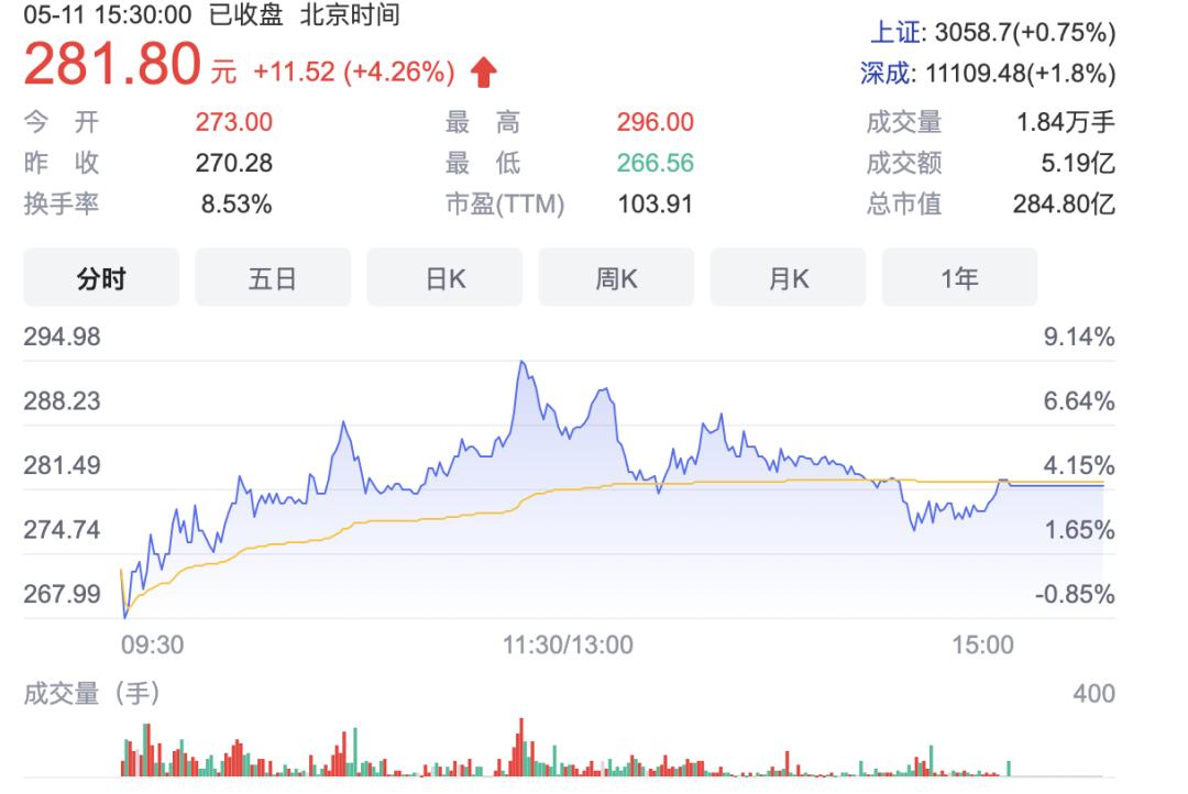 开盘首日,纳芯微涨幅8.7%,市值252.7亿元。即使市场不景气,纳芯微近期也守住了基本盘,还实现上涨,目前市值280亿: