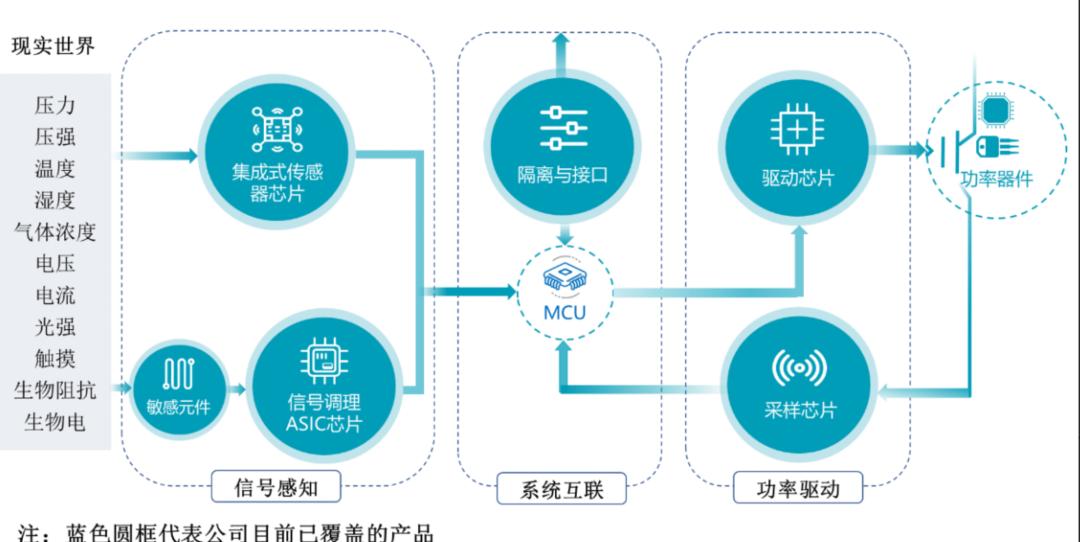 信号感知、系统互联与功率驱动。