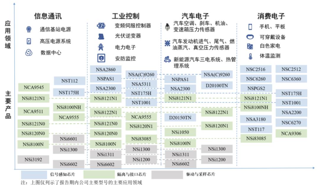 根据招股书披露,纳芯微的主要产品是集成式传感器芯片、隔离与接口芯片以及驱动与采样芯片。
