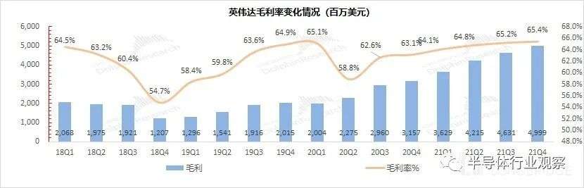 (图源:长桥海豚投研) 2018-2021年英伟达毛利率变化情况