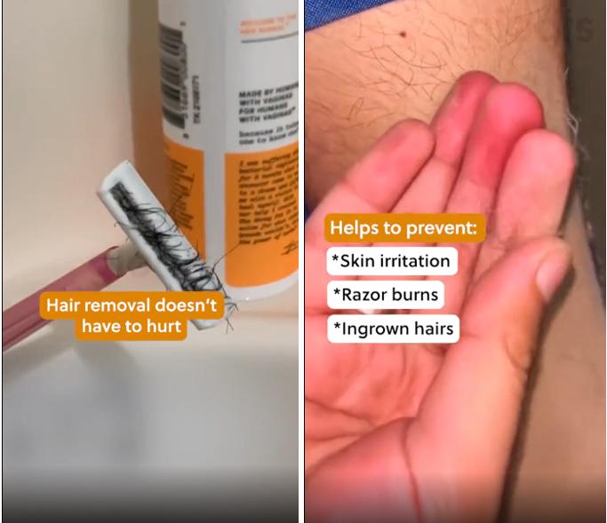 比如一款脱毛仪广告,在视频的前半部分就展示了以往用户使用普通脱毛刀的痛点——“总是会伤到皮肤”。随后告诉用户自身产品的优势,不仅可以脱毛,还可以预防皮肤损伤。