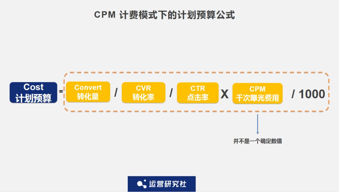 穿山甲 (全球开发者成长平台) 提出了一个公式,假设信息流广告是以 CPM (Cost Per Mille,千次曝光) 来计费,那么计划预算为: