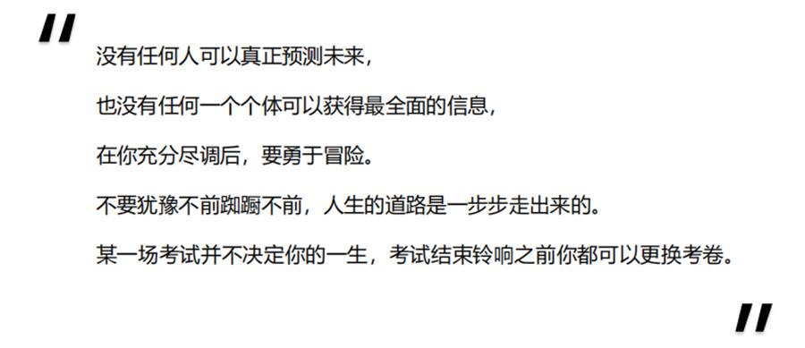 如果说你觉得你并不知道你这一生真正热爱什么,不是要非做什么不可的话,那么我劝你用逆向思维,去寻找一个现在看似好像不那么被认可的一个行业。当然,我们要符合大的择业的逻辑判断:如果你相信它长远来看还是不错的,只是短期并不是风口,那么你跳进去,或许就可以获得超额实力。