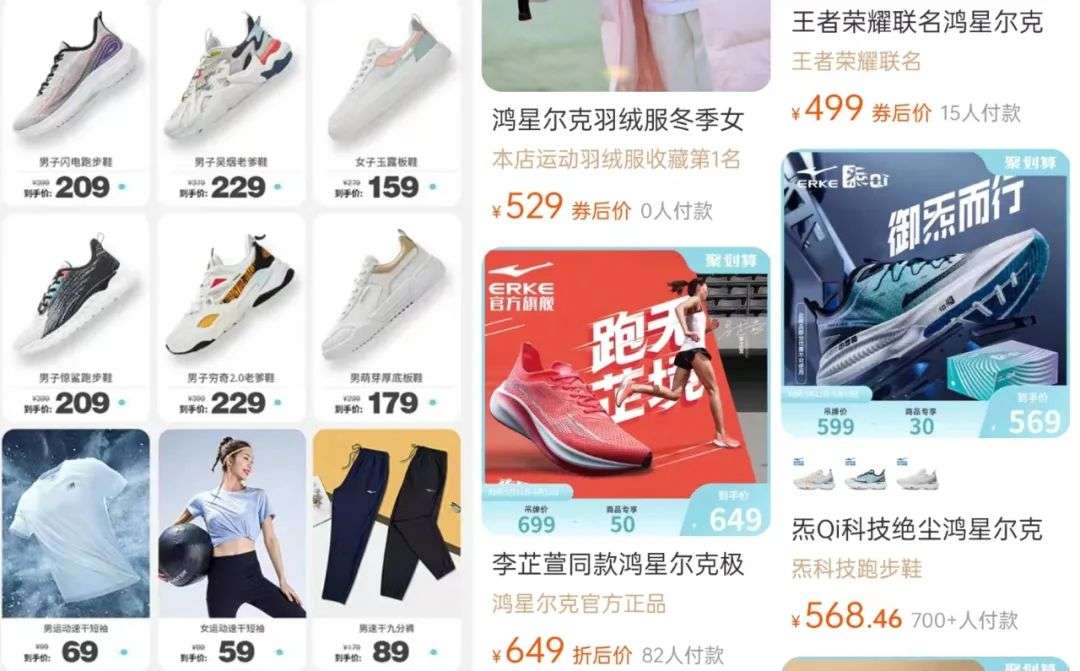 其实从目前鸿星尔克推出的产品来看,其基础产品价格从五六十元到两三百元不等,仅有最新发布的几款科技风产品售价定到了四到五百元。可以看出,其仍未摆脱长期低价策略所带来的影响。