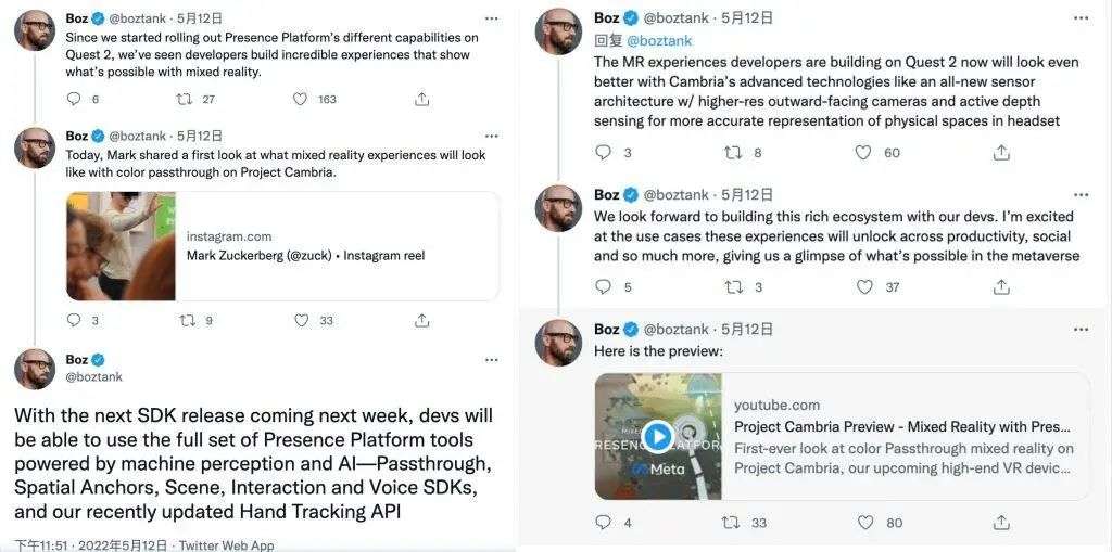 Meta CTO Andrew Bosworth 在 Twitter 上公布的信息,图片来自:Twitter