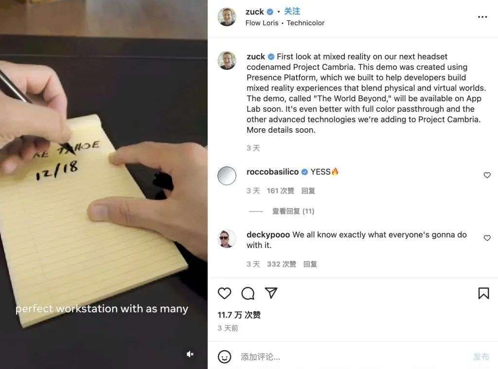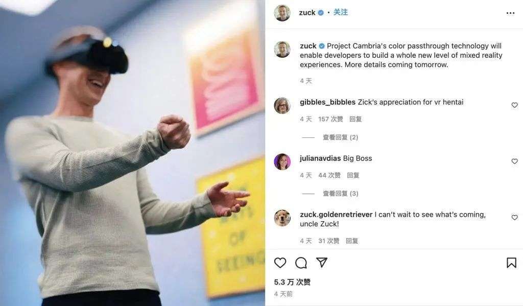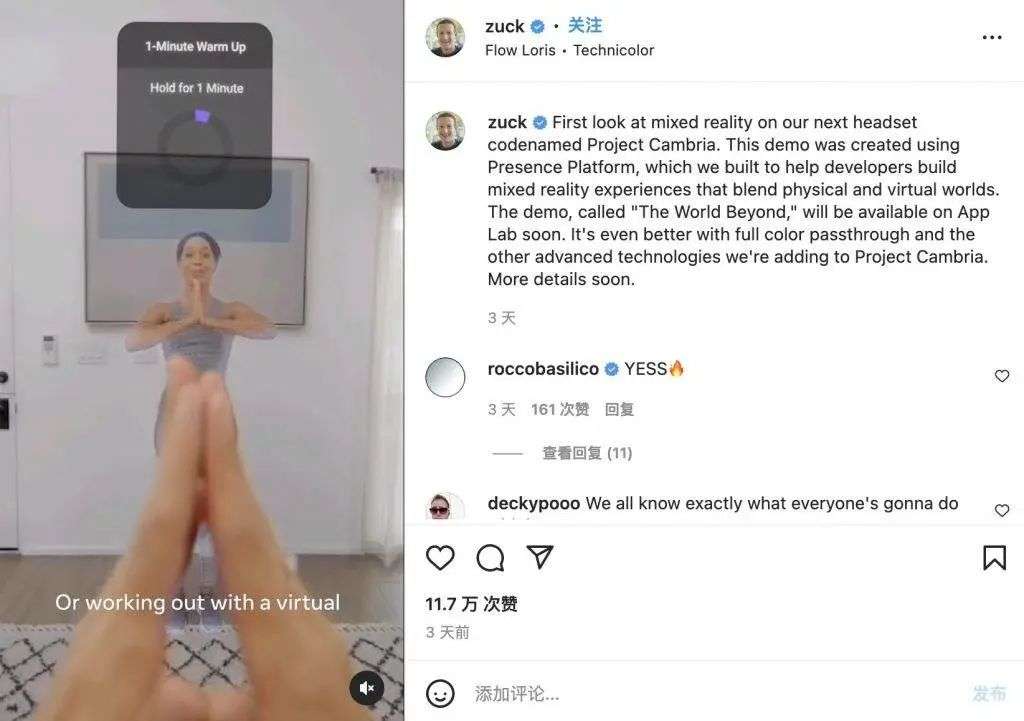 构建这个平台,也是为了帮助开发人员更好地构建融合物理和虚拟世界的混合现实体验。因此,「Project Cambria」的关键词之一就是「混合现实」。