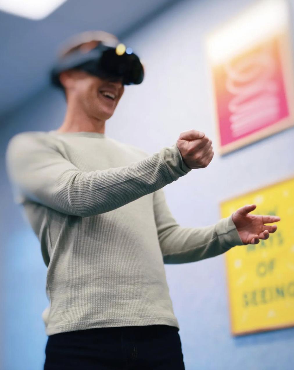 戴上 Meta 新头显的扎克伯格:「撸」虚拟宠物,跟虚拟教练一起运动