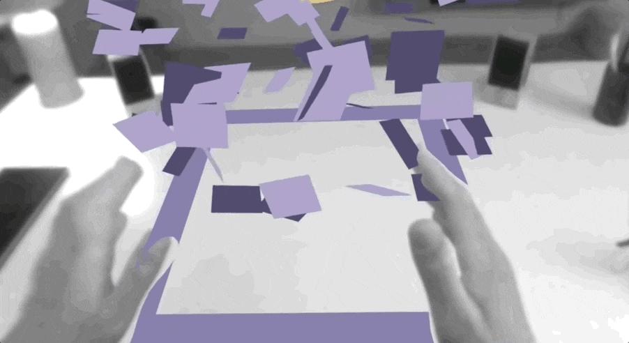不仅如此,戴上「Project Cambria」后,还能坐在虚拟的办公桌前往现实的本子上写字;甚至只需要用一个真实的键盘,就能通过头显里创造的混合现实进行文本阅读甚至是处理工作。