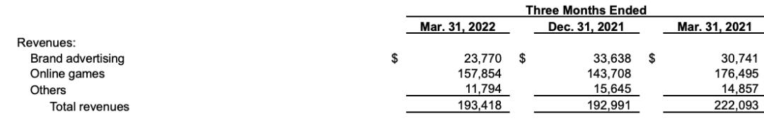 在线游戏收入在1.5亿美元至1.6亿美元之间,较2021年同期下降1%至增长6%,较2022年第一季度下降5%至增长1%。