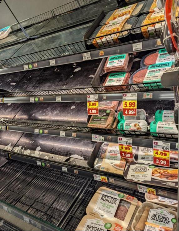 被横扫一空的真肉与销售困难的假肉,图片来源:互联网