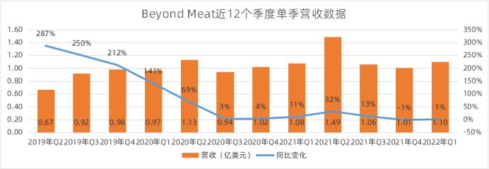 从植物肉龙头之一,Beyond Meat近期业绩看,市场的潜能和消费者接受度,至少在当下不太乐观。公司业绩进入2021年后同比增速骤降,Q4出现下滑,营收基数不大且业务刚刚起步,本应高速增长的业绩直接踏进瓶颈期本就是非常糟糕的信号,2022年Q1的“暴雷”级财报更是讲明困境有多严峻——0.2%的毛利率对于一种消费品,说是糟糕实在太过轻描淡写,“毁灭性”一词才算恰如其分,该数据意味着企业对供应链和成本管控的完全失能,即使没有任何其他支出,企业的盈利能力也趋近于0。