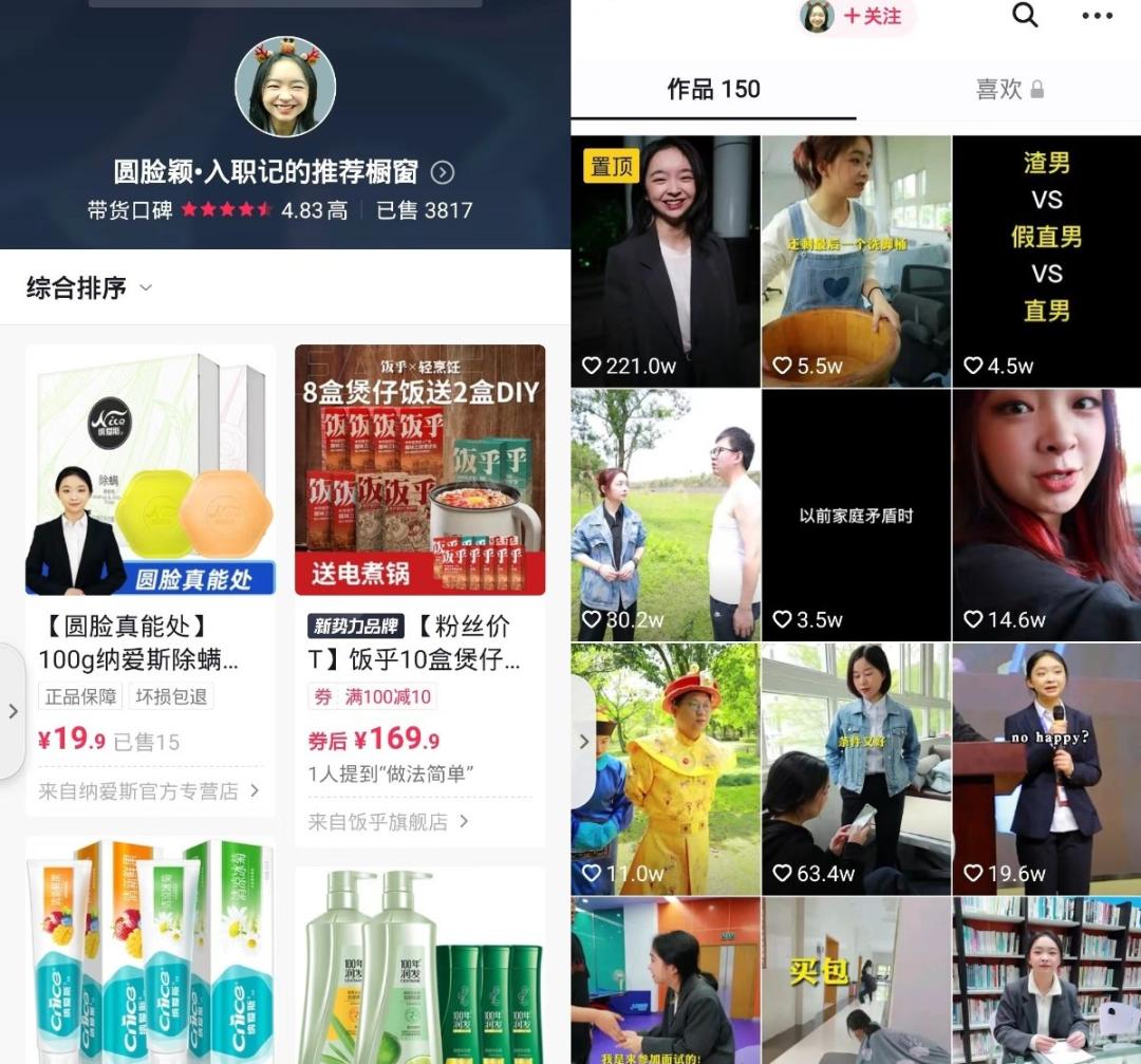 抖音上,拥有273万粉丝的短视频账号“圆脸颖入职记”,其实是个人护理集团纳爱斯自主孵化的素人账号。视频里,长着圆脸的小颖在办公室常常和同事上演搞笑日常,而纳爱斯的品牌总在运镜下一闪而过。