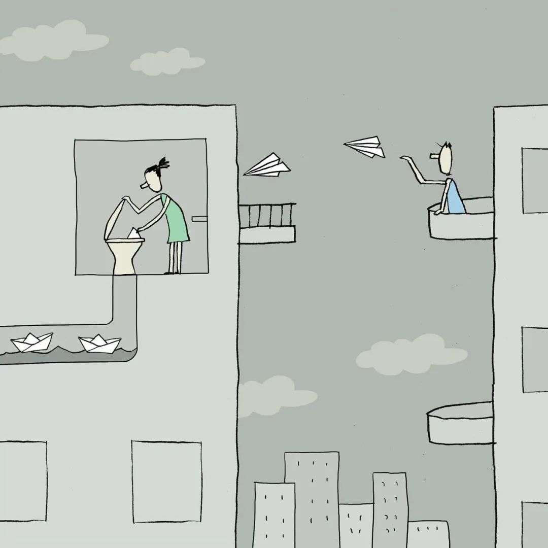但困境来临时,并非孤身一人,好像又是不幸中的万幸。某些网文和同人段子爱用的一个经典场景是,「A和B被关进了一个不做爱就不能出去的房间,会发生什么」。而如今最荒诞的想象也已经变成现实:被疫情绑定在逼仄的室内空间,不能逃离的我们,除了相濡以沫地协作,似乎也没有更好的选择。