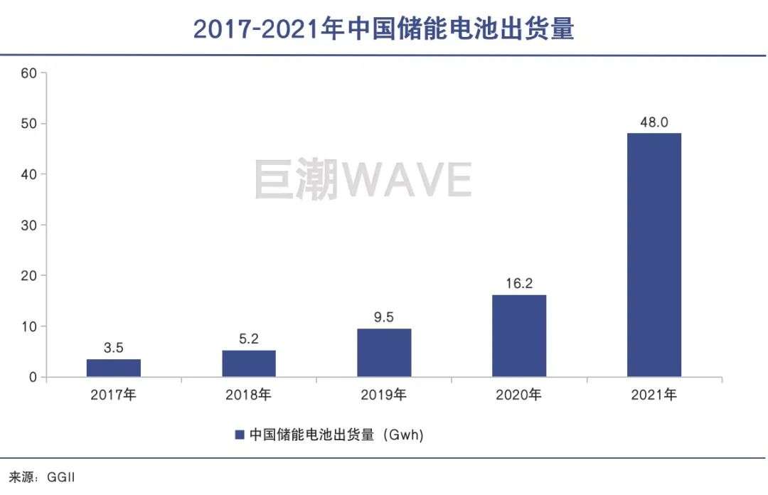 GGII数据显示,2021年国内储能电池出货量达48GWh,同比增长2.6倍;其中电力储能电池出货量29GWh,同比2020年的6.6GWh增长4.39倍。在新冠疫情和供应链短缺的压力之下,这样的增长速度实在是难得一见。