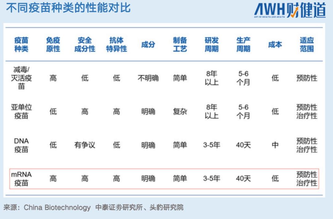 mRNA疫苗属于最为前沿的第三代疫苗,回爱民将mRNA技术路线的优势总结为四点:研发周期短、双重免疫机制、安全、易于批量生产。