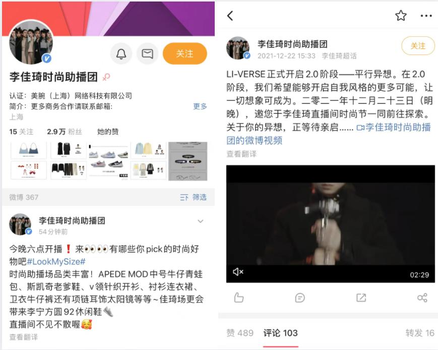 薇娅被封号的两天后,即2021年12月22日,李佳琦助播团就高调宣布升级,“正式开启2.0阶段。”