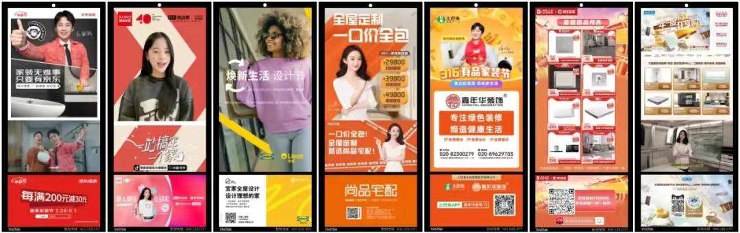 因为低频高额的消费特征,家装品牌获客并不容易。前些年有上门免费量尺、免费获得设计方案等流行玩法,这些天在新潮社区媒体上密集出现“39800元整家定制套餐”、“29800一口价全包定制套餐”的广告,融入“一口价全包套餐”引流的广告在强化品牌本身的同时,实现吸引拉新的目的,比如尚品宅配在新潮社区梯媒打出“一口价全包定制套餐”广告,一方面在家庭人群强化“包够用、包好看、包环保”的产品竞争力,强化“全屋定制”品牌标签;另一方面则通过二维码等吸引用户留下线索、到店体验,实现“人”“货”“场”的精准对接。