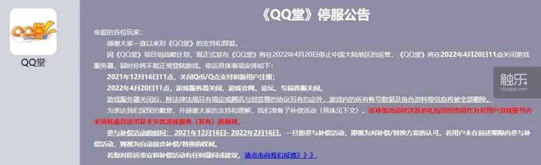 2021年12月,腾讯已经发布了《QQ堂》的停服公告