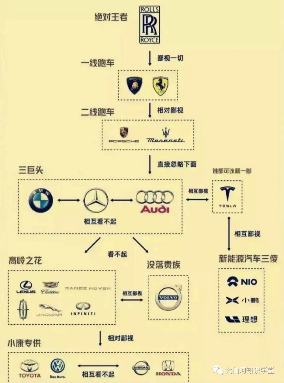 比如女生的奢侈品包包鄙视链、男生的汽车鄙视链;即使做产品的最后都想要创造一个万物互联(天下大同)的理想国,但因为有人、有层级,每个利益群体诉求不同,大家内心并不想要一个最终万物互联的结果呢?