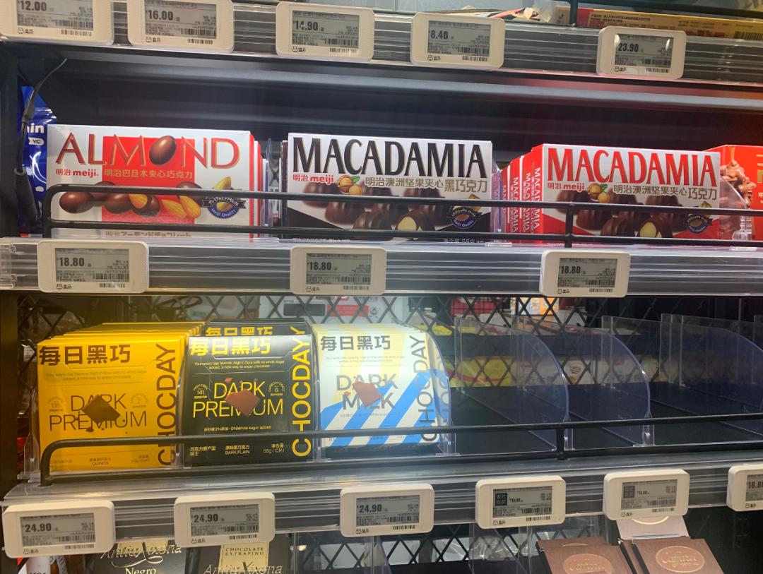 520临近,快消君走访了武汉几家大型连锁商超,发现在糖果巧克力区丝毫看不到节日氛围,不仅没有相关的推广活动,货架上甚没有摆放礼盒,只有少许供消费者买来自己食用的小包装巧克力。商超工作人员称,此时并不是巧克力消费的主要节气,超市备货较少,如果想购买礼盒,可以去商超APP上下单,工作人员再从仓库调货。