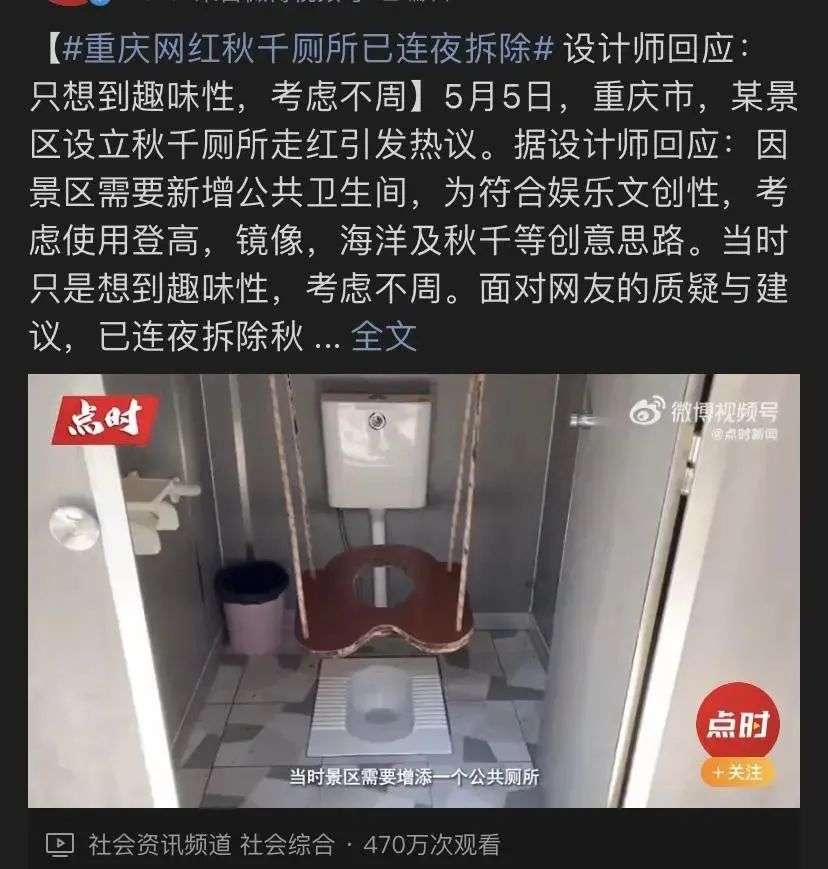 就比如,前段时间,重庆某景区里的秋千厕所——