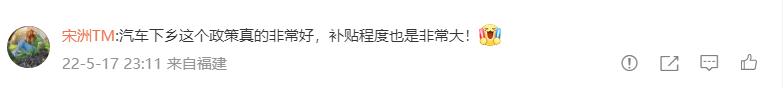 虽然具体实施政策还未落地,但已有不少网友开始憧憬。有网友留言表示:“汽车下乡这个政策真的非常好,补贴程度也是非常大!”