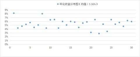 以下是成立时间最长的、前30只债基年化收益分布图。