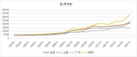 就拿2002-2015年来说,广州房价上涨了3.5倍,平均每年涨幅10%,深圳房价上涨6.4倍,平均每年涨幅15.5%。