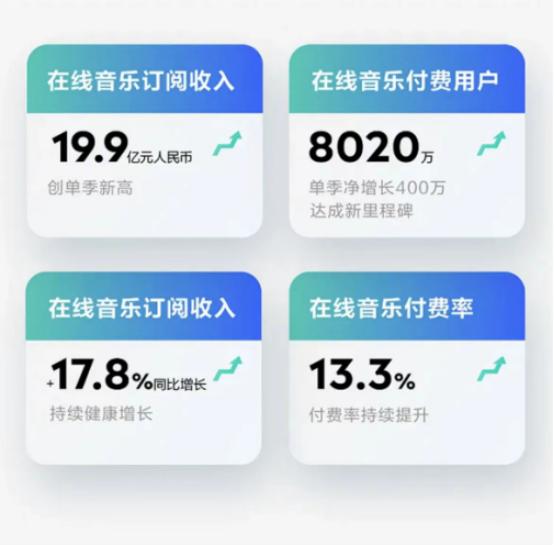 当音乐独家版权的优势不再,TME是否还能续写稳稳的幸福,是财报最大的看点。根据财报数据,TME 2022年第一季总营收为66.4亿元,净利润6.49亿元,保持住了持续盈利的势头,另外,在用户增长不容乐观的当下,TME稳步渗透应约付费用户,付费人数突破 8000 万,付费率创新高。