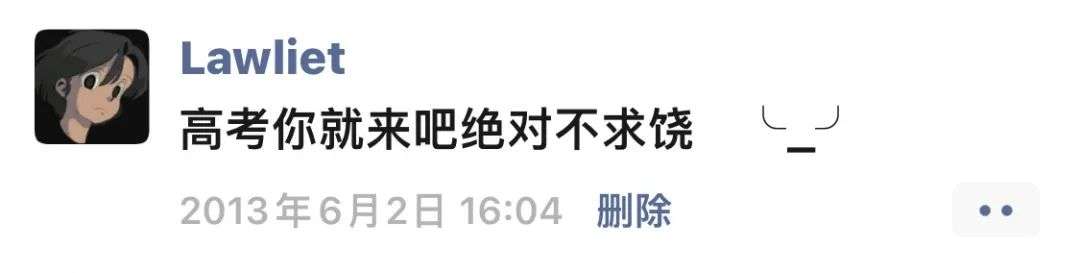 @阿嚏: “那时刚上大学,正青春,呵呵还是哈哈哈哈哈的意思,而不是现在这么讽刺。”